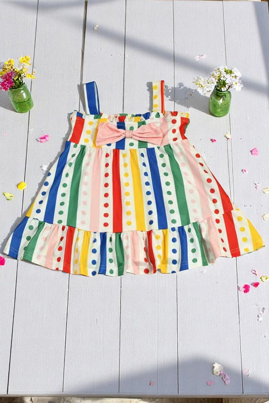 SaleGirls dress wholesale Multi color stripes & dots prints w/pink bow XCH03018