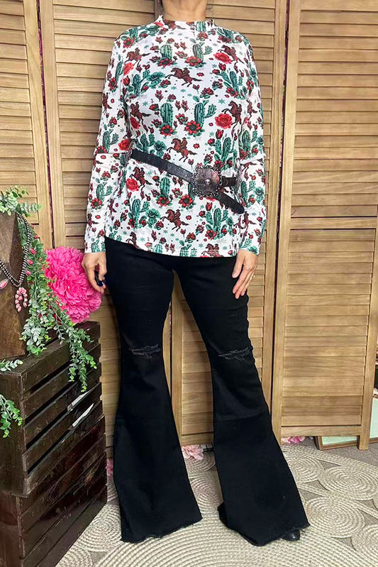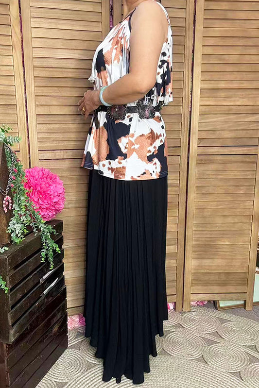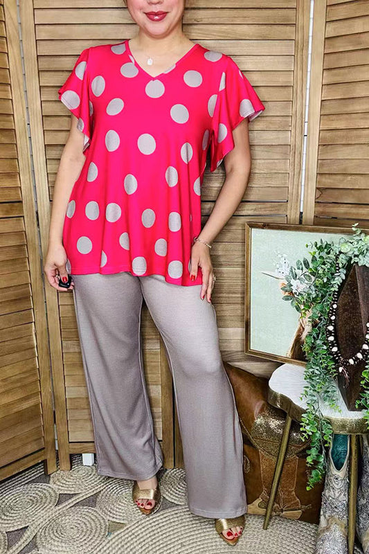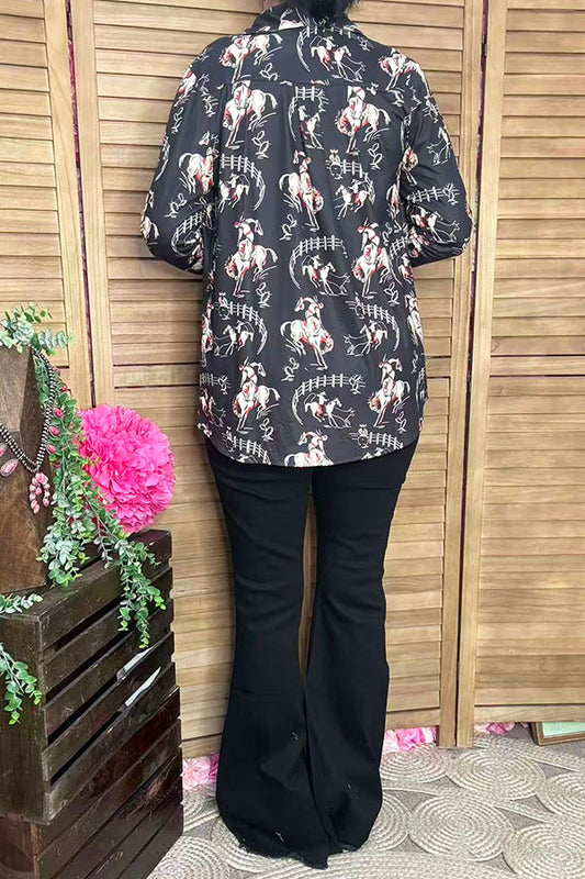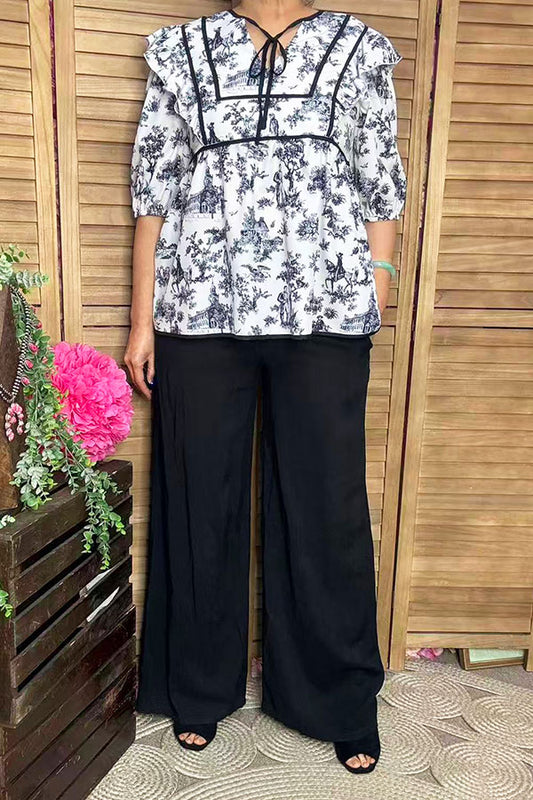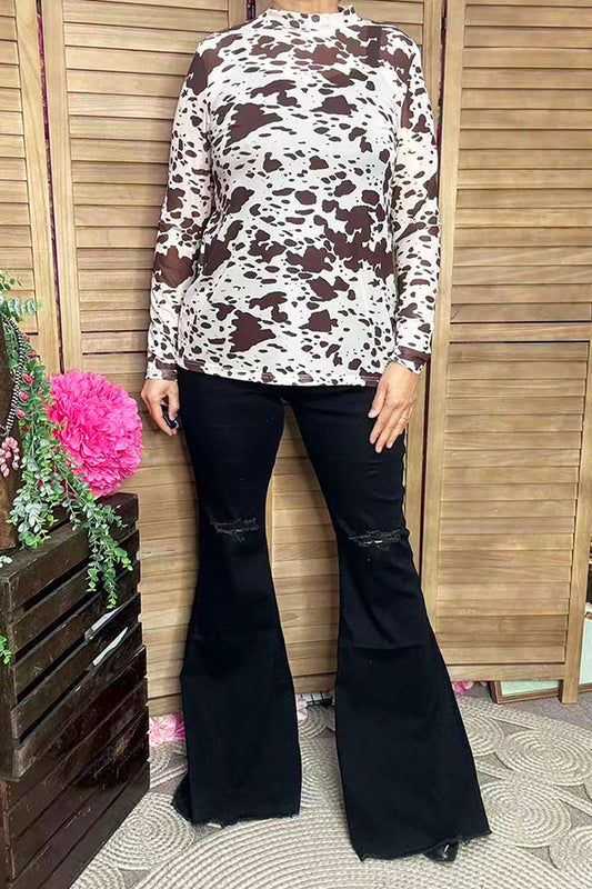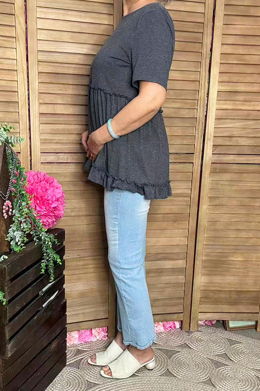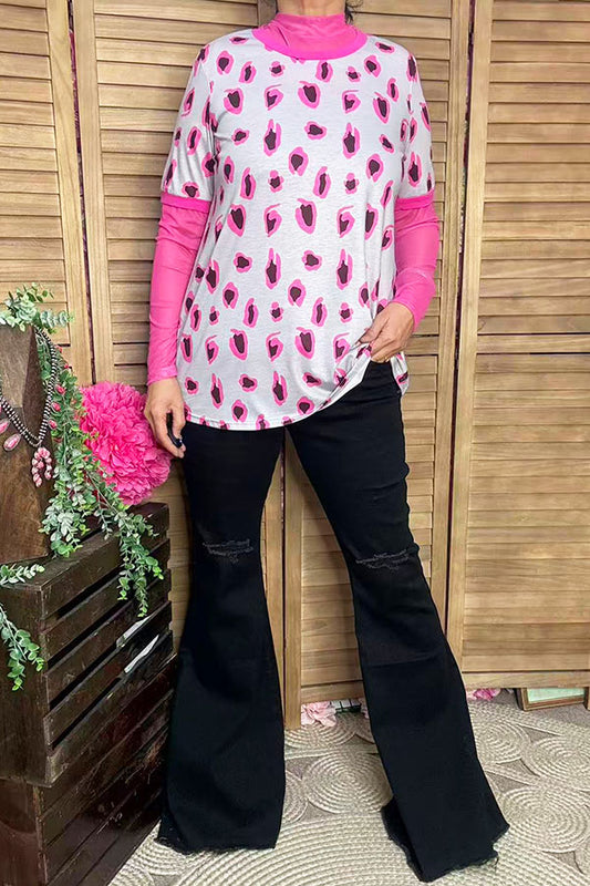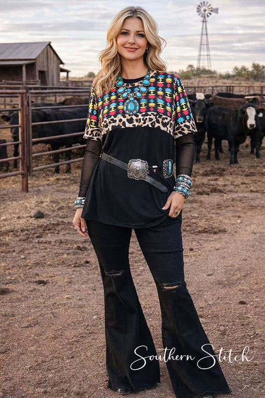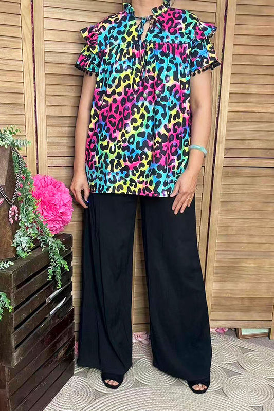 SaleWestern leopard double ruffle/black pompom short sleeve women tops BQ15644
