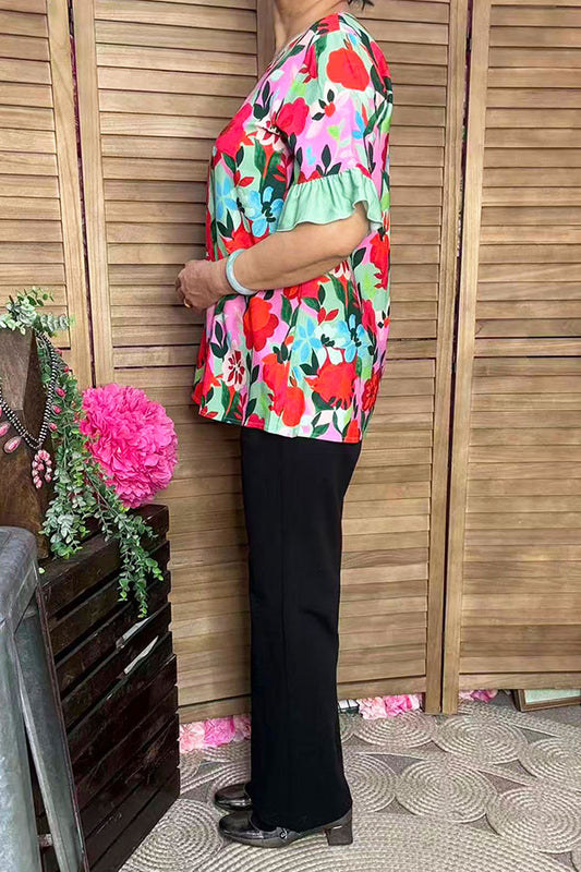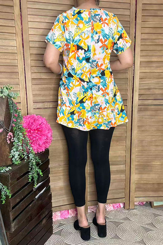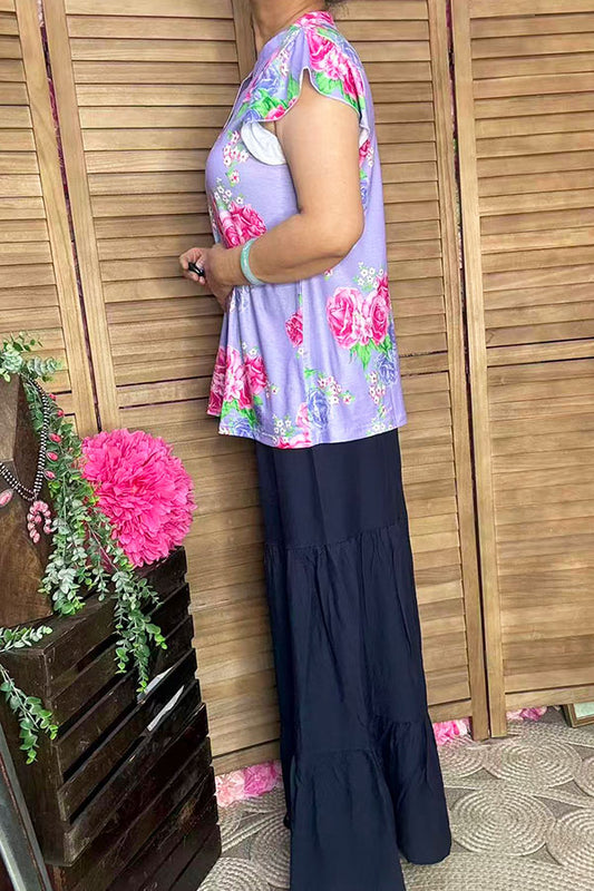 SaleFloral printed velvet baby doll top & shorts 2pc girls sets 251271M