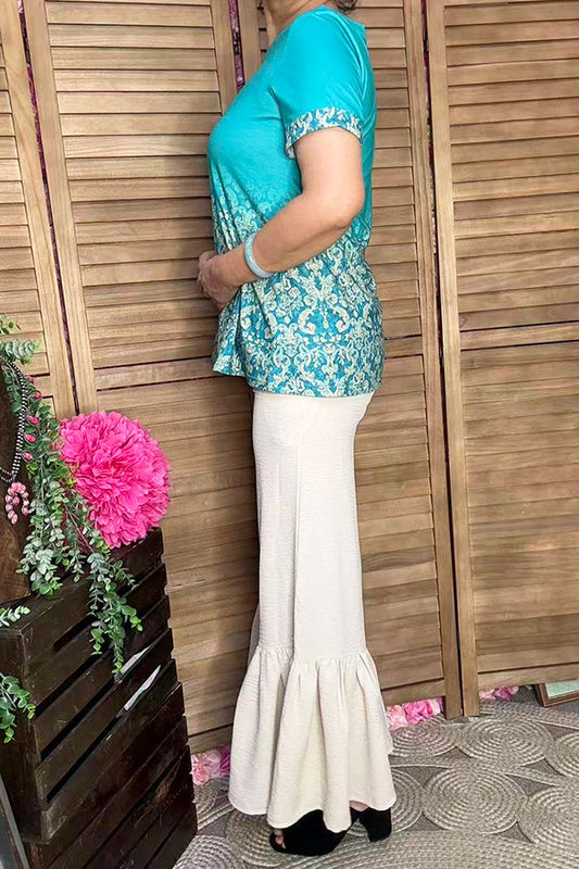 SaleFlower gauze shirred top & wide leg pant 2pc girls set 251275M