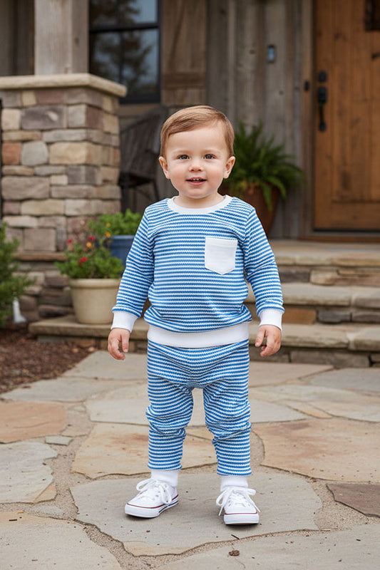 SaleBlue knitted fabric long sleeve top & pant 2pc boy's set 251278M