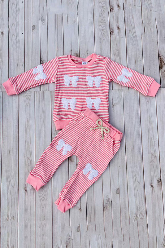 SalePink knitted long sleeve top & white bow 2pc girls sets 251281M