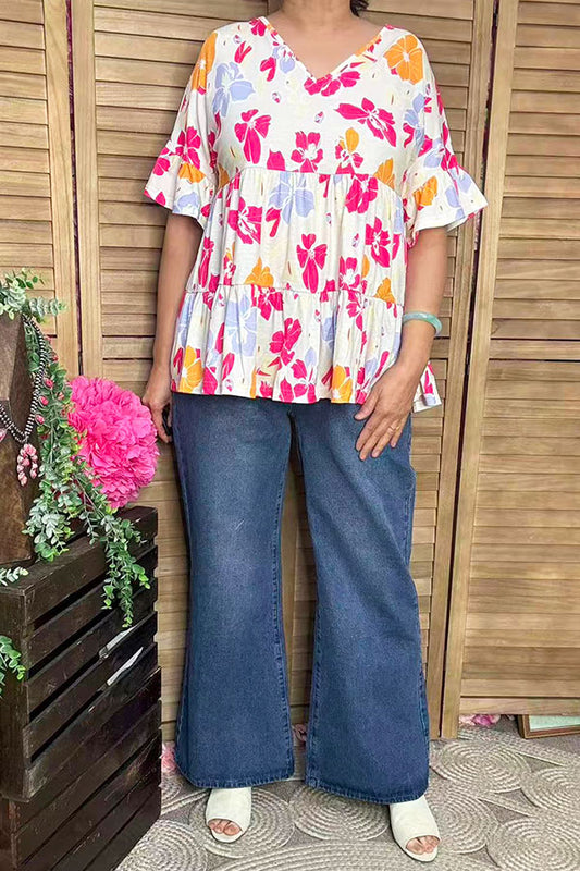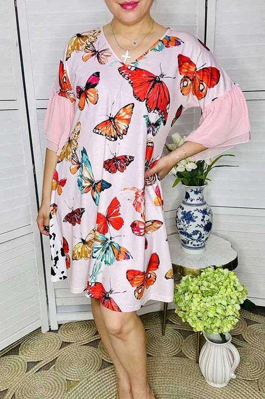 SaleButterfly printed top & flower embroidery denim jeans 2pc girls set 251299M