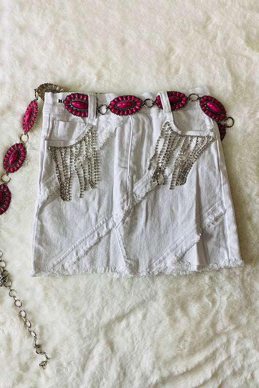 DLH2619 Solid white denim girls skirts w/rhinestone wholesale