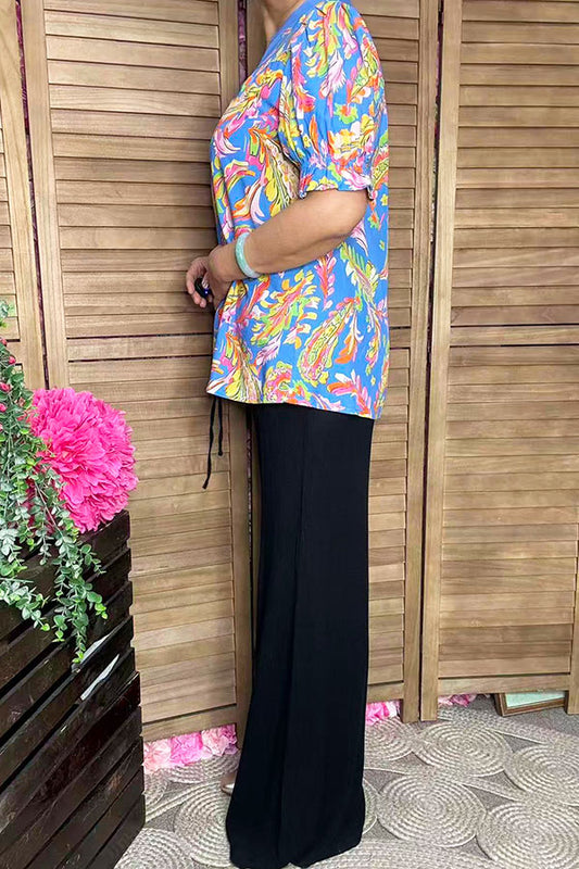 SaleCropped blue striped top & pant & belt girls sets 251301M
