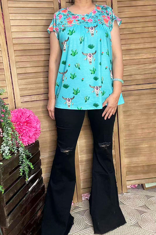 SaleSoft western bull skull printed short sleeve baby boy romper 251264M