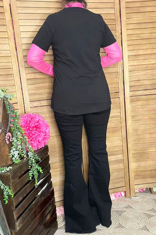 SalePink short sleeve top & pink bow embroidery jeans 2pc girls set 251297M