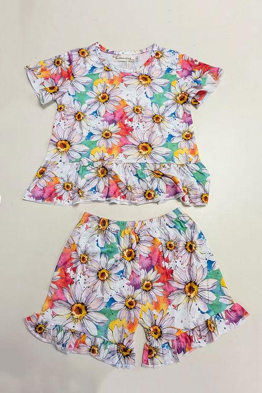 SaleFloral short sleeve top & shorts 2pcs girls set XCH0666-6H