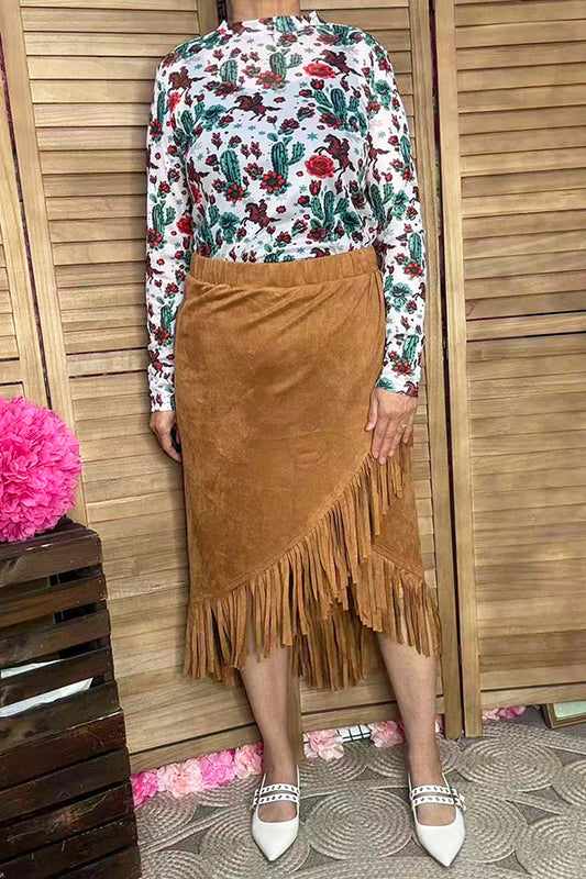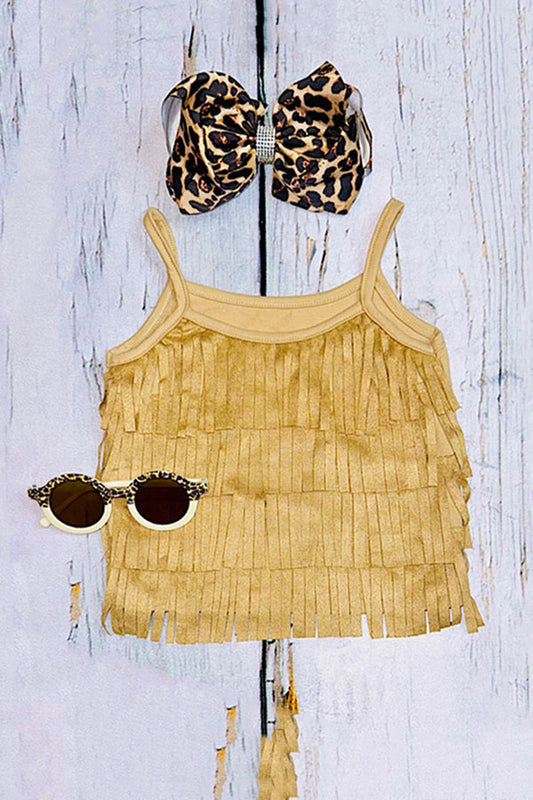 SaleWestern Kids Tan suede fringe tassel top & skirt 2pc girls set DLH2615/DLH2619