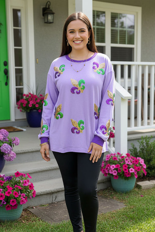 SaleLavander puff short sleeve top & pearls bell bottom jeans 2pc girls sets 251295M