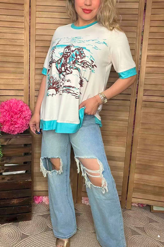 SaleGirls t-shirt "With God All Things Are Possible" bleached blue animal print short sleeve DLH0923-08