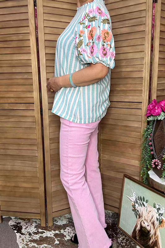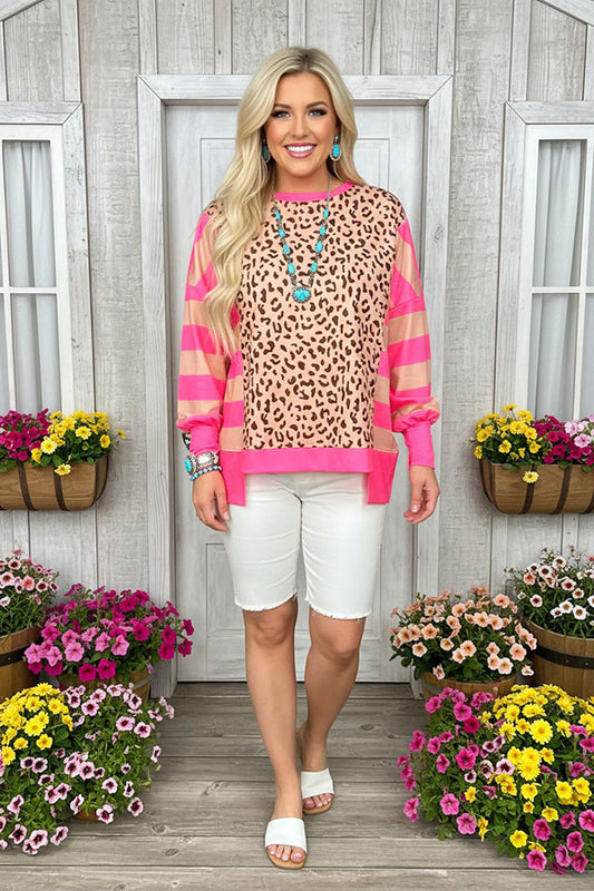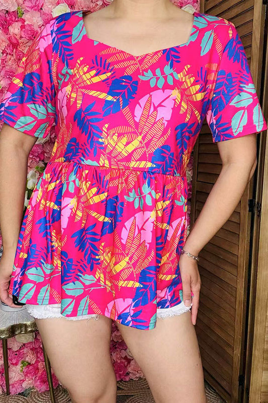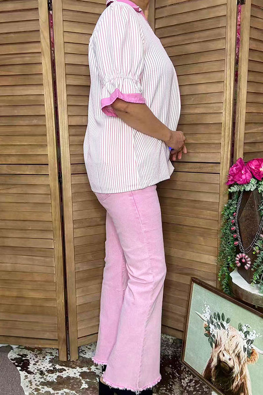SaleXCH0666-5H Pink striped & Floral printed top and shorts sets