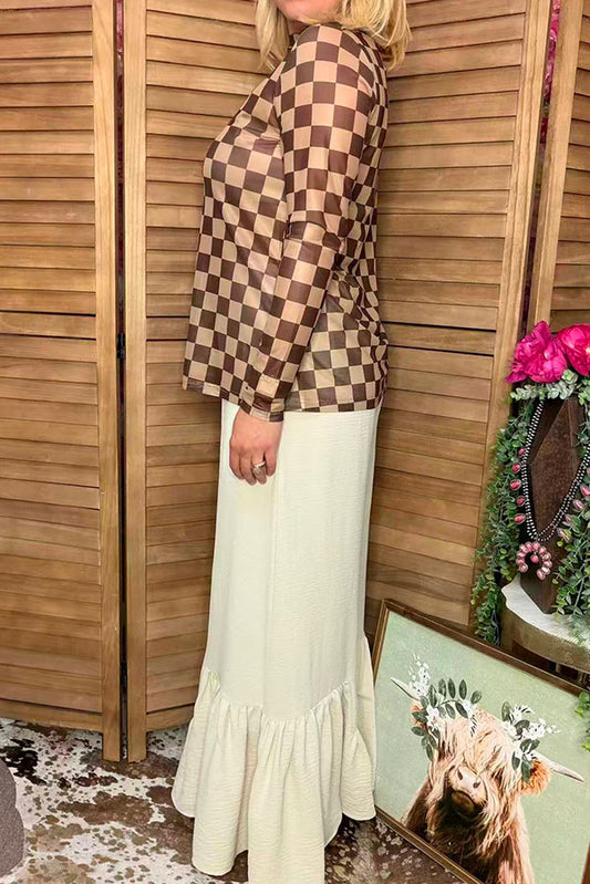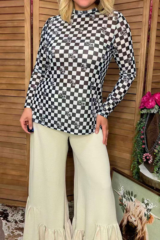 SaleMint & white Checkered printed long sleeve top & Shorts 2pc girls set XCH04054
