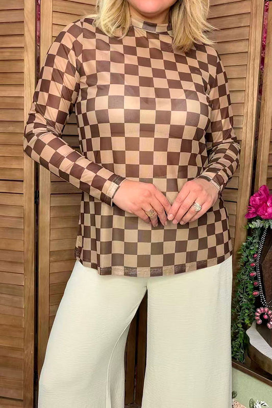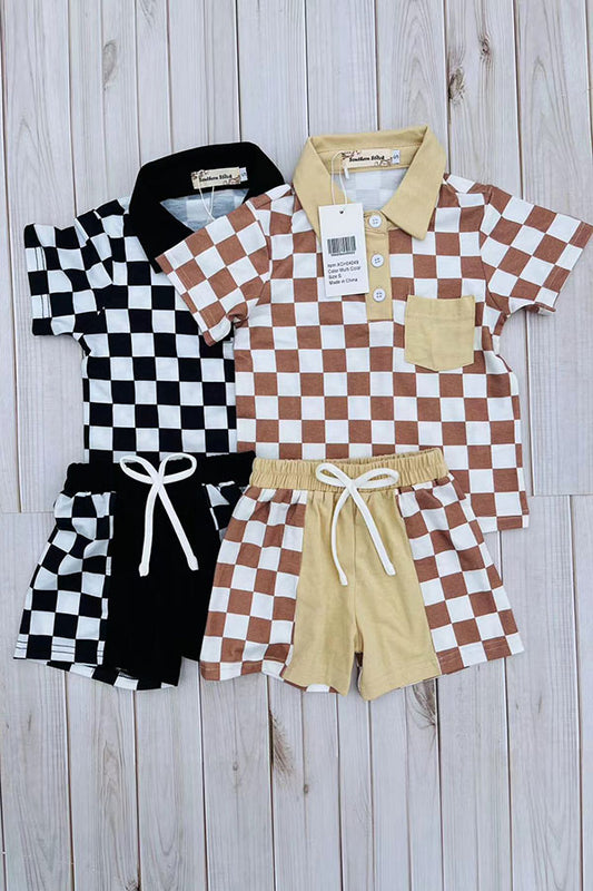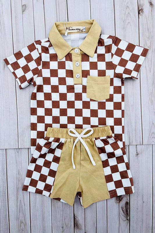 SaleBrown checkered short sleeve top & shorts 2pc boy's set XCH04049