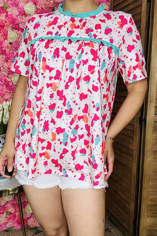 Aqua & hot pink embroidered chicken ruffle baby romper DLH2511