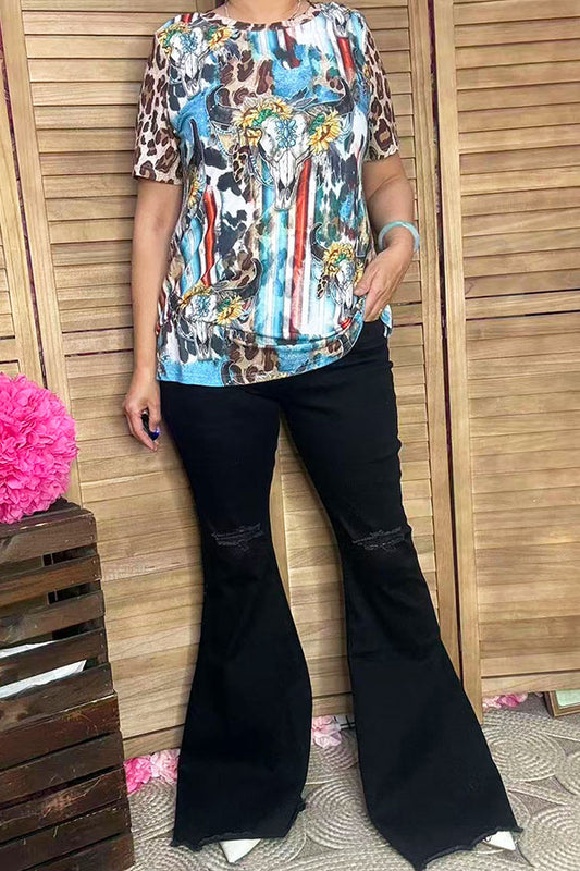SaleCactus, serape, & leopard print short sleeve t-shirt XCH0722-20H