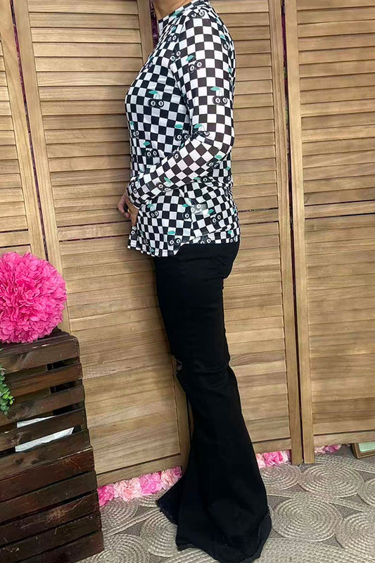 SaleXCH0722-102H Horse shoe & bull skull printed short sleeve girl t-shirt