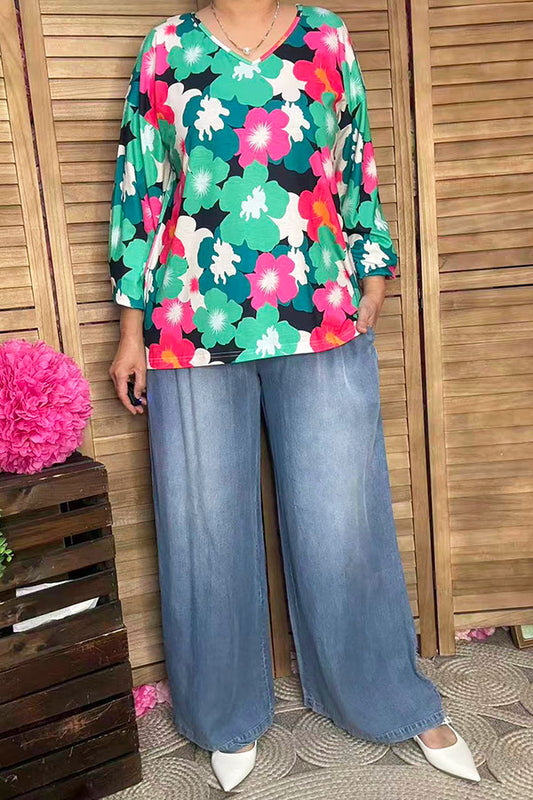 SaleTurquoise short sleeve girl t-shirt & black jeans 2pc girls set XCH0722-2H/DLH2694
