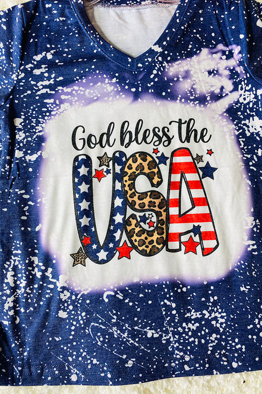 SaleDLH2321 "God bless the USA" blue short sleeve girls top