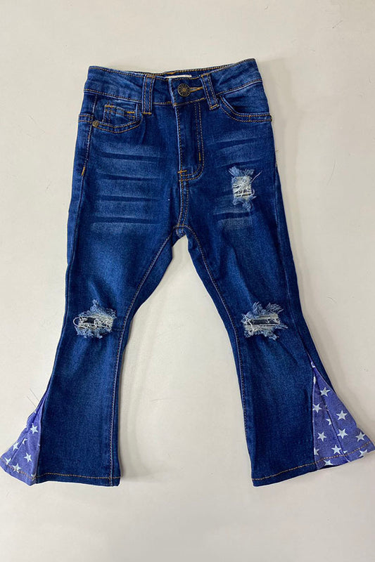Dark blue distressed denim bell bottoms w/stars SP-C001 (A10S8)