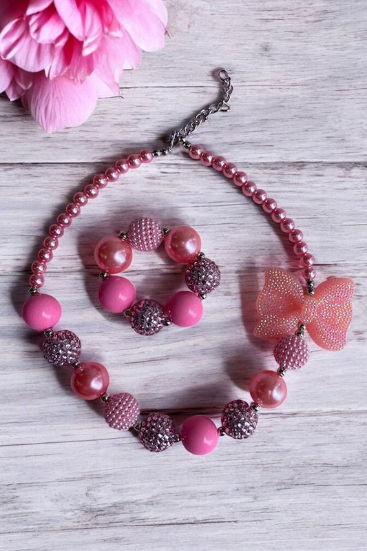 SaleKids boutique necklace suppliers blue & Pink bubble girls necklace & bracelet sets 240307
