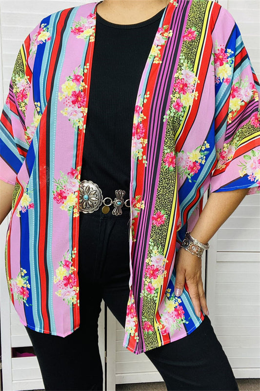 SaleYT1213 Multi color striped shear kimono w/floral & leopard print for women