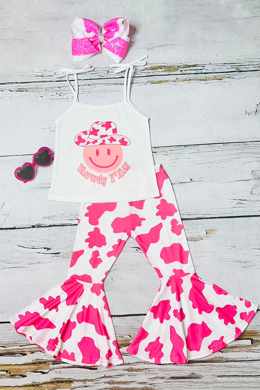 ”Howdy Y'ALL" smile face tunic & bell-bottom pant girls clothing sets X0777-23