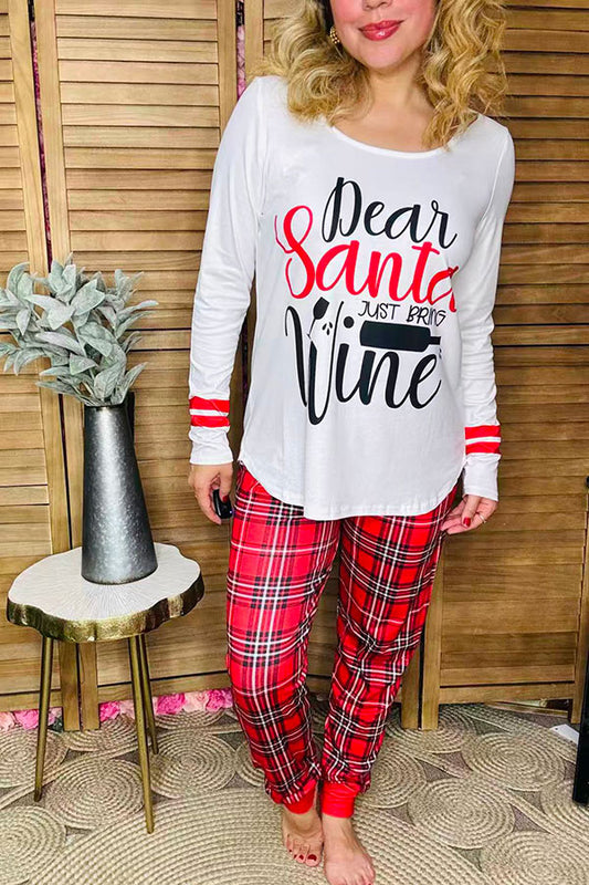 Sale"Dear Santa Just Bring Wine" Christmas 2pc women pajamas sets BQ15519