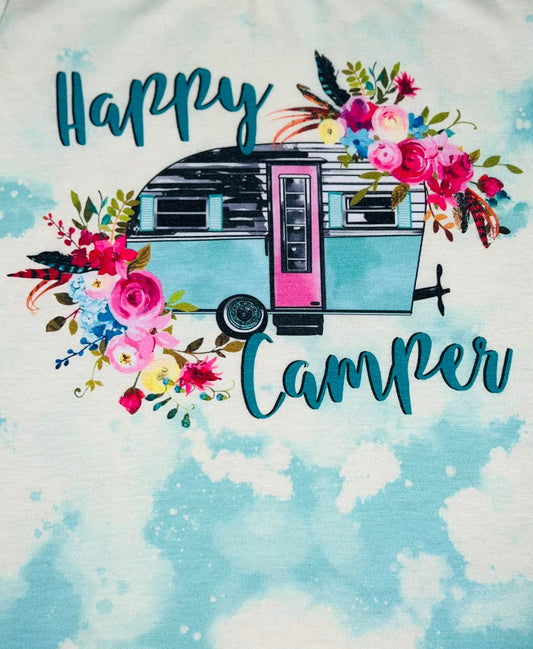 Sale"HAPPY CAMPER" aqua bleached short sleeve t-shirt DLH1108-16