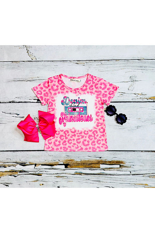 Sale"DENIM AND RHINESTONES" pink cheetah short sleeve top