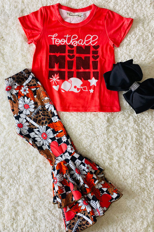 "FOOTBALL MINI" coral & leopard 2pc girls set X0015-14