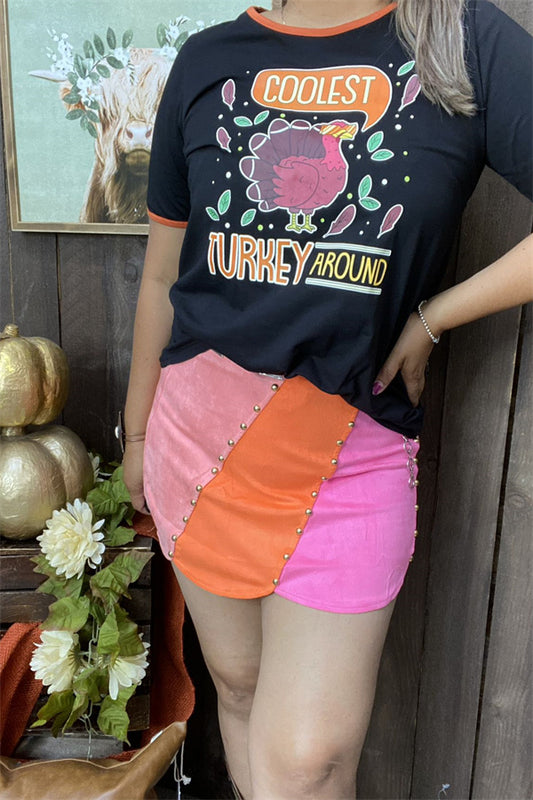 "COOLEST TURKEY AROUND" Black printed women t-shirt DLH10108 IS4