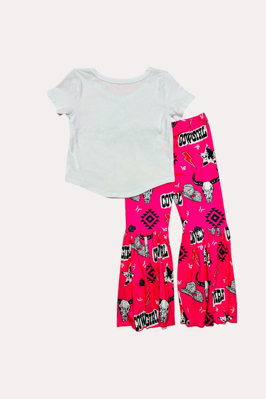"COWGIRL" top & hot pink western print 2pc girls set D2520