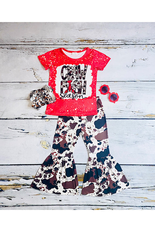 "CRAW FISH SEASON" red & cowhide 2pc set