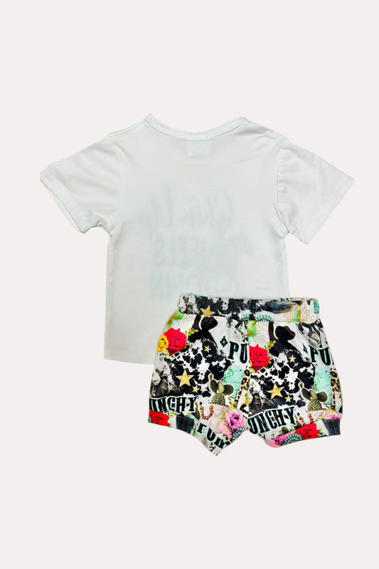 9160MZ Western chin up heels down top & shorts 2pc baby sets