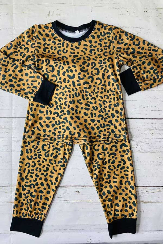 Kids clothing wholesale Unisex leopard prints 2pc girls pajamas sets DLH2862