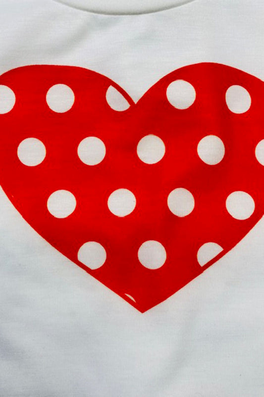 X04016 Red polka dot heart white top & skirt 2pc girls sets