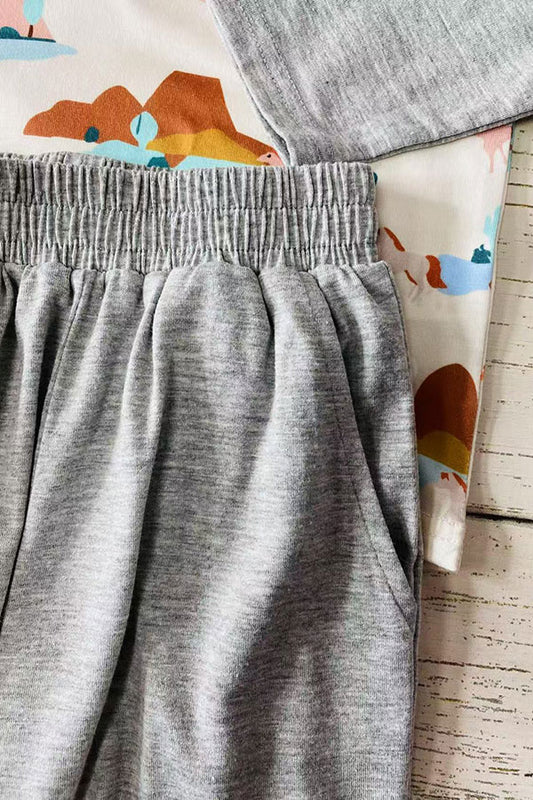 Children pajamas sets wholesale Horse prints top & pant 2pc kids sets XCH04028