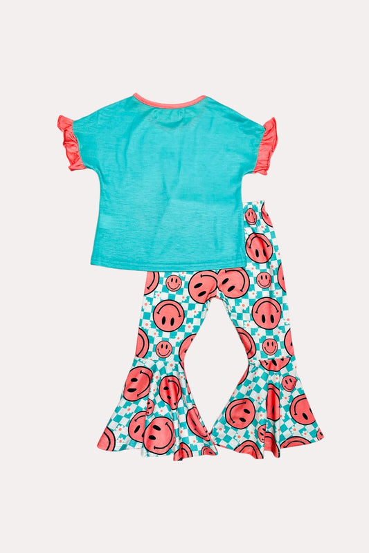 X0666-30 "HAVE A NICE DAY" mint top & pink checkered pant 2pc girls sets