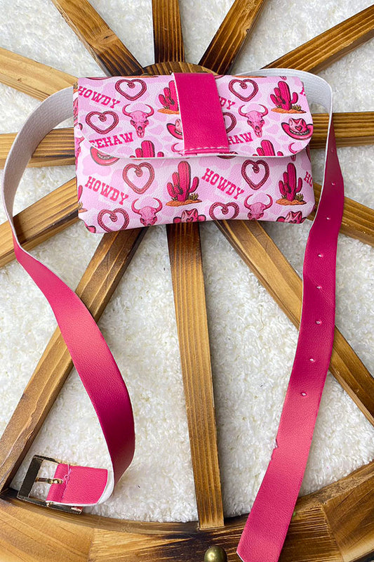 DLH2795 Western HOWDY & bull & cactus prints kids waist bag