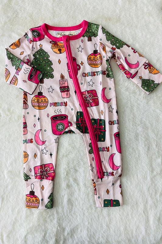 Merry Christmas printed long sleeve baby girls onesie X05005