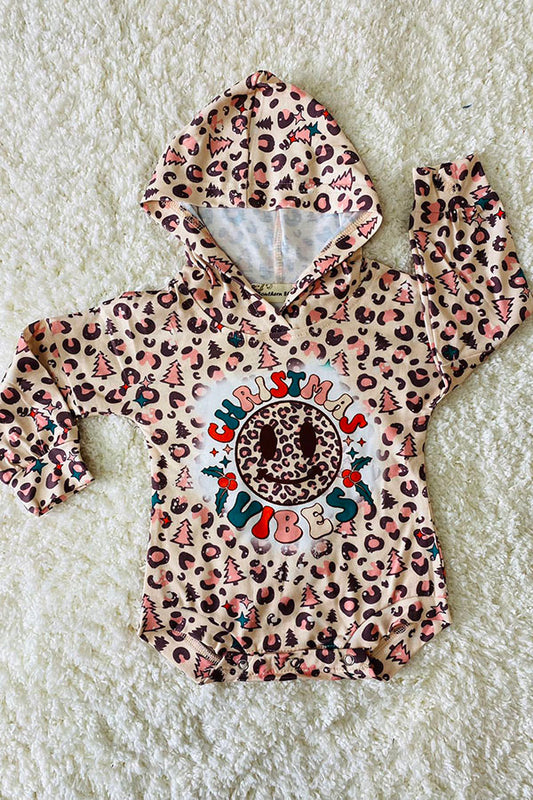 XCH0012-12H Christmas vibes & Leopard printed baby onesie w/hoodie