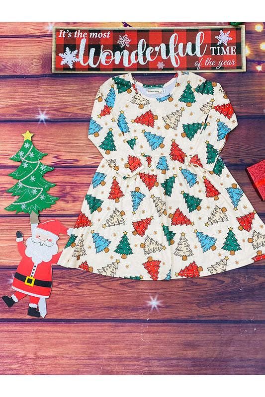 Christmas tree pring long sleeve girls dress XCH0555-25H