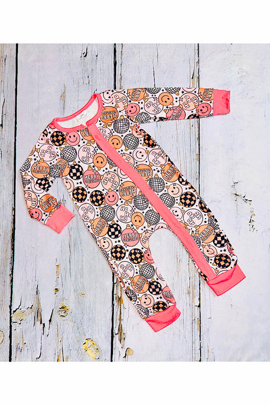 "MERRY CHRISTMAS" spheres & smiley faces baby romper 1178WY