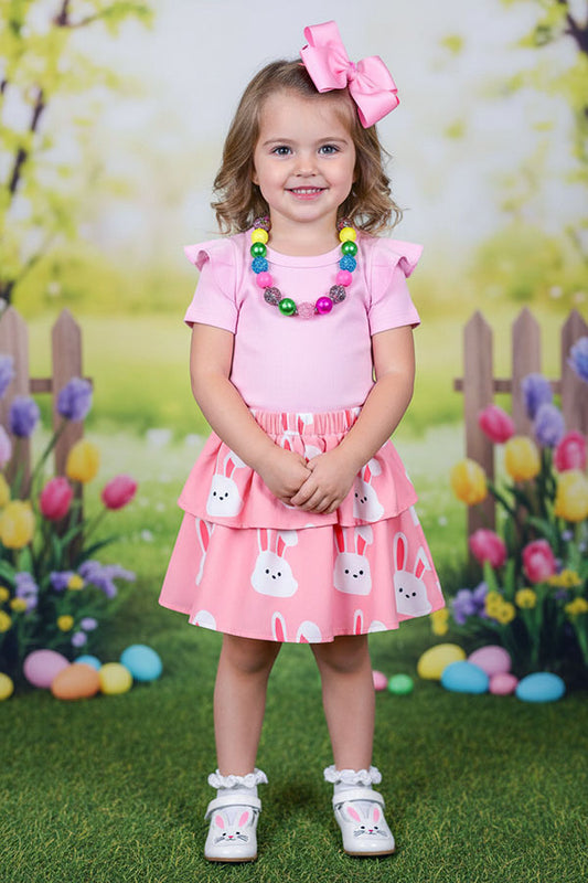 SalePink pit cotton top & pink bunny skirts 2pcs easter girls sets XCH04021