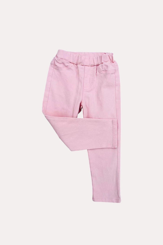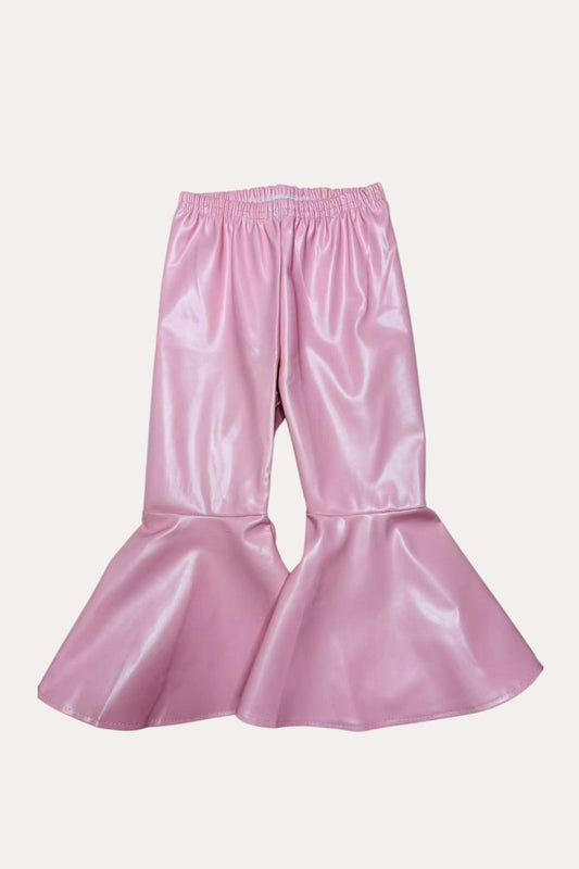 Ribbed knitted fabric pink checkered flare leg girls pant 250947M