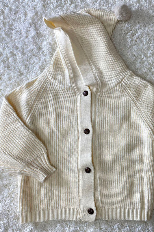 230146M Kids cream long sleeve knitted hoodie sweater w/buttons