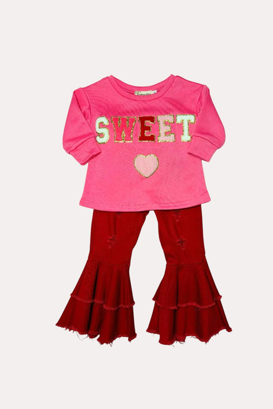 SWEET & heart embroidery pink sweatershirt X01001 A7S8
