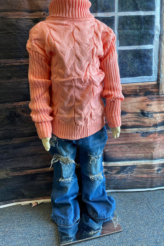 DLH2537 Pink long sleeve knitted girls sweater w/turtleneck