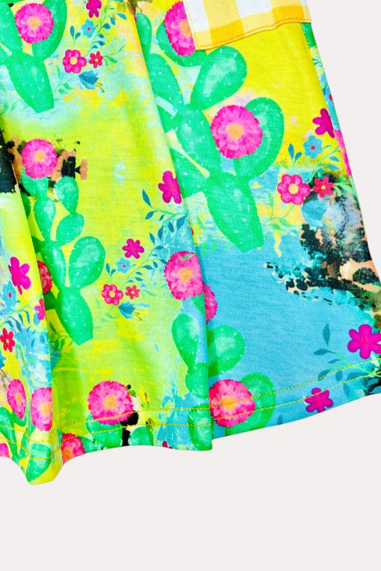SaleX0888-13 Western tie dye cactus printed girl dress w/pockets
